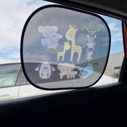 Naudi rahulikku sõitu staatilise päikesesirmiga, mis kinnitub otse klaasile tänu tagaküljel olevale staatilisele kiledle. Poolläbipaistev must võrk loomamustriga laseb läbi meeldivat päevavalgust, kuid vähendab teravaid päikesekiiri ja suurendab sõitjate privaatsust.