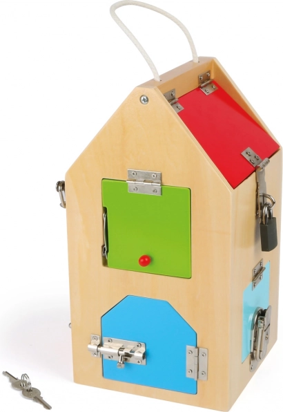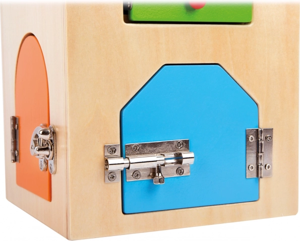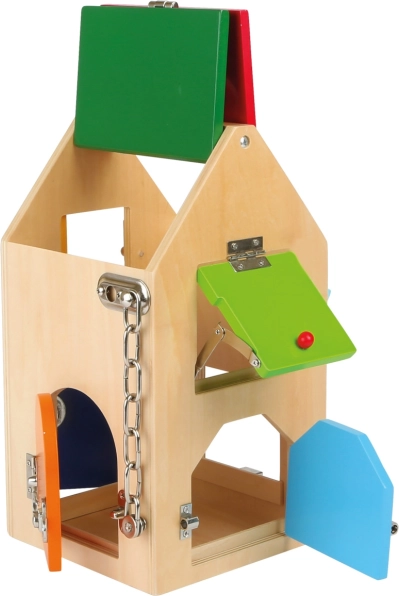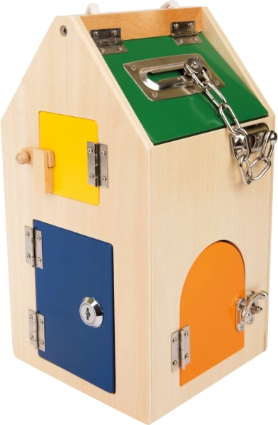 Small foot lukustustega motoorikamaja on nutikas didaktiline mänguasi, mis võimaldab 3+ aastastel lastel turvaliselt avastada erinevaid sulgurmehhanisme. Iga uks peidab uue väljakutse – alates U-lukust ja silinderlukust kuni erinevate kruvide ja hoobade ning hingedeni ja turvaketini. Nii arenevad loomulikul viisil silma-käe koordineeritus, kannatlikkus ja keskendumine.