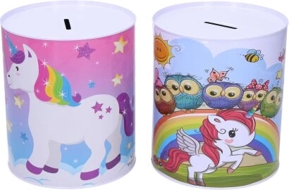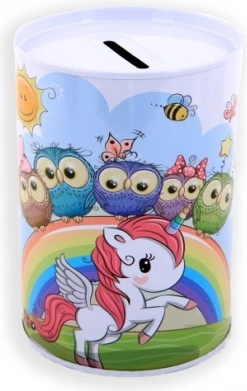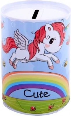 Metallist ükssarviku motiiviga hoiukass on mitte ainult praktiline abiline säästmiseks, vaid ka ilus dekoratiivne element lastetoas. Selle värvilised ükssarvikute, vikerkaare ja tähtede illustratsioonid rõõmustavad iga last.