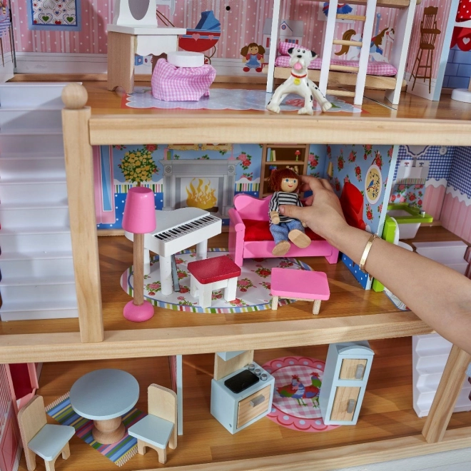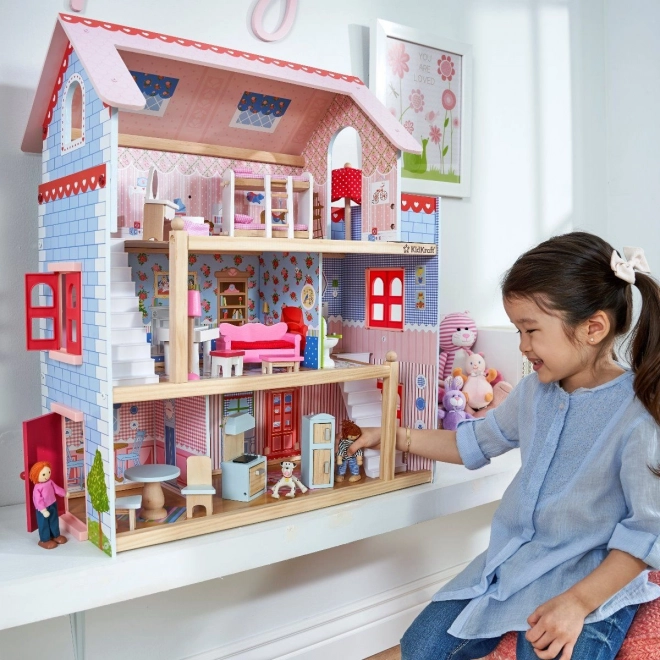 KidKraft Chelsea nukumaja rõõmustab rikkalike detailide ja läbimõeldud sisustusega. Kolm korrust viie toa ja rõduga kutsuvad avatud mängule, samas kui värvilised lisandid ja realistlikud detailid arendavad fantaasiat ja peenmotoorikat. Komplektis on 16 mööblieset koheseks mänguks.