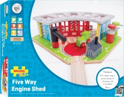 Puidust depoo on mõeldud viiele erinevale rongile ning sisaldab toimivat pöördsilda, mis võimaldab rongidel hõlpsalt eri garaažide vahel liikuda. Süsteemis on avatavad uksed ja tankla, mis lisavad mängule realistlikkust.