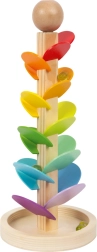 Puidust Small Foot kuulirada muudab iga kuuli laskmise väikeseks kontserdiks. Kui klaaskuul libiseb mööda värvilisi lehti, tekivad järjest kõrgemad kuni madalamad toonid, mis ergutavad kuulmistaju ning pakuvad lastele nii rahustavat kui ka lõbusat kogemust. Tugev puidust konstruktsioon stabiilse aluse ja sileda pinnaga on meeldiv katsuda ja valmis igapäevaseks mänguks.