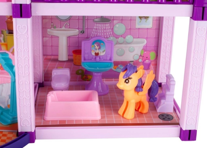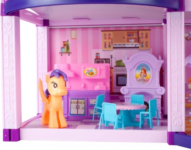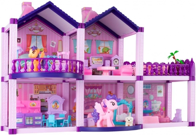 Värviline kahekorruseline nukumaja ponide ja rohke lisavarustusega pakub palju lõbu ning võimalusi loovaks mänguks. Komplektis on poni- ja koerafiguurid, mööbel kööki, magamistuppa ja vannituppa ning rõdud ja terrass välisstseenideks. Ideaalne alates 3. eluaastast lastele, kes armastavad fantaasialugusid, rikkalikke tarvikuid ja interaktiivset mängu.