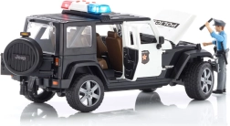 BRUDERi politsei Jeep Wrangler Rubicon on tõetruu koopia pärisautost mõõtkavas 1:16. Lapsi paeluvad detailne salong ja mootoriruum, kuhu pääseb tänu avatavale kapotile. Mudel ühildub BRUDER Bworldi figuuride ja tarvikutega ning mahutab kuni 4 figuuri.