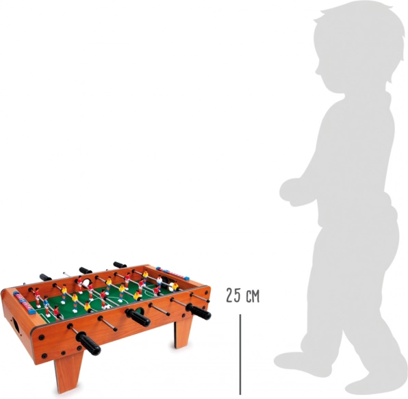 Suur small foot lauajalgpall on ideaalne pere mäng, mis asetatakse hõlpsalt mis tahes lauale. Tänu kompaktsetele mõõtmetele ja tugevatele lakitud puidu, metalli ning vastupidava plasti detailidele on see valmis igapäevasteks matšideks. Roheline mänguväljak mõõtudega 60 × 34 cm tagab sujuva mängu ja mugava mängijate juhtimise.
