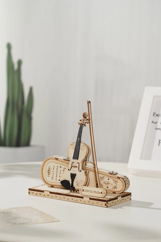 See puidust 3D vioola pusle on läbimõeldud dekoratiivne mudel, mis mõjub efektselt riiulil, tööpinnal või muusikanurgas. Looduslik puidupind ja peened nikerdusdetailid rõhutavad meisterlikku teostust ning lisavad interjöörile hubase, kunstipärase aktsendi.