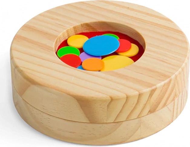 Nautige ajatuid mänguhetki Bigjigs Toysi ehtsas puidust kirbumängus. Praktiline karp ei ole ainult kõigi tükkide hoiustamiseks, vaid ka stiilne täiendus lastetoale. Värvilised žetoonid kutsuvad mängima, mis toetab keskendumist ja täpsust.