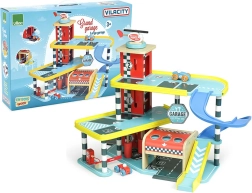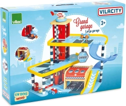Suur VILAC Vilacity puidust garaaž on ideaalne linnatranspordi keskus kõigile väikestele võidusõitjatele. Tänu läbimõeldud mehaanilistele detailidele, nagu töötav lift, tõkkepuu ja pesula, arendavad lapsed peenmotoorikat, fantaasiat ja loogilist mõtlemist. Komplektis on kaks autot ja helikopter, nii et mäng võib alata kohe pärast kokkupanekut.
