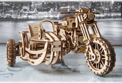 Valminud mootorratta külgkorviga mõõdud on umbes 22 × 16 × 11,5 cm ning see on efektne interjööriliselement. Üksikasjalik pildijuhend juhib ehitajat samm-sammult ning tagab meeldiva kogemuse ilma liimita.