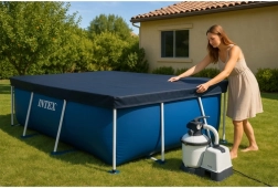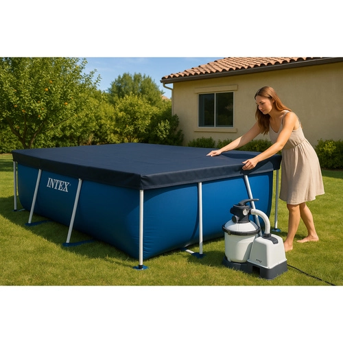 INTEXi kate on loodud 300 × 200 cm ristkülikukujulistele raam-basseinidele. Tänu vastupidavale materjalile talub see ilmastikutingimusi ja aitab kaitsta vett lehtede, putukate ja mustuse eest. Umbes 20 cm ulatuv serv ja pingutusnöör tagavad stabiilse kinnituse, et kate ei libiseks.