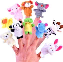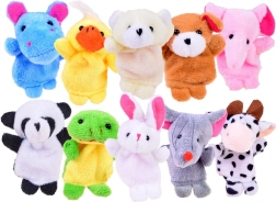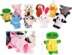 Komplektist leiate lemmikloomakesed: jõehobu, hiirekese, koerakese, karupoja, konnakese, elevandipoja, lehmakes, panda, jänkukese ja pardikese. Tänu kompaktsele suurusele libisevad nukud hõlpsalt sõrmele ning sobivad reisile, lasteaeda ja koju.