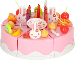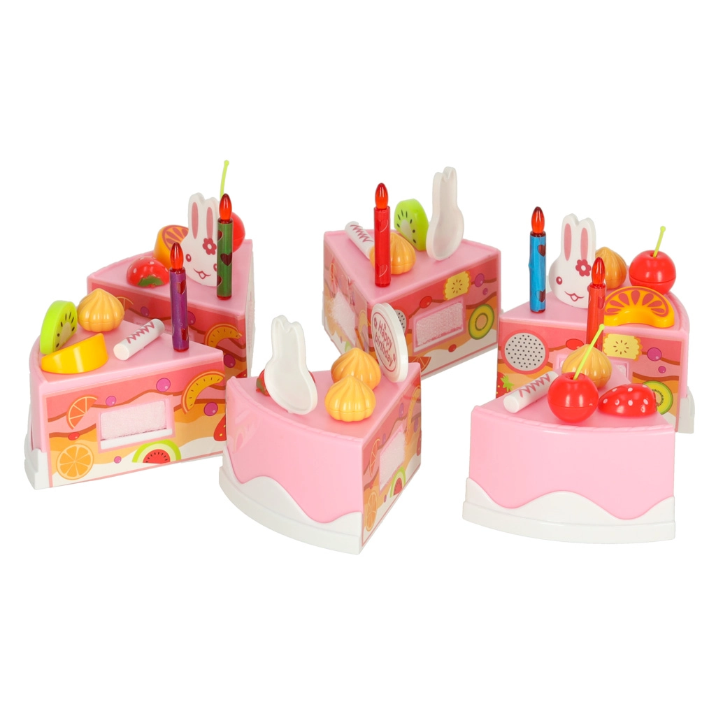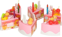 Avasta sünnipäevapeo võlu iga päev. Laste roosa tort 6 tükiga ja kirjaga “Happy Birthday” on tänu takjapaeltele lihtsasti lahti võetav ja taas kokkupandav. Väikesed kokad kaunistavad selle vastavalt tujule – küünalde, jänkude ja värvilise puuviljaga – ning serveerivad taldrikutele.