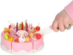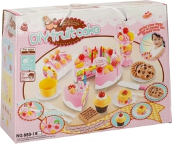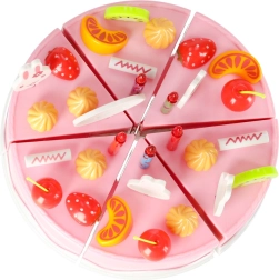 Lõbus roosa viilutatava tordi komplekt rõõmustab väikseid pagarikke alates 3. eluaastast. 6 tükist koosnev tort ühendub takjapaeltega ja seda saab lõigata plastnoaga. Rikas valik puuvilju, kaunistusi ja tarvikuid toetab fantaasiat, rollimänge ja peenmotoorikat.
