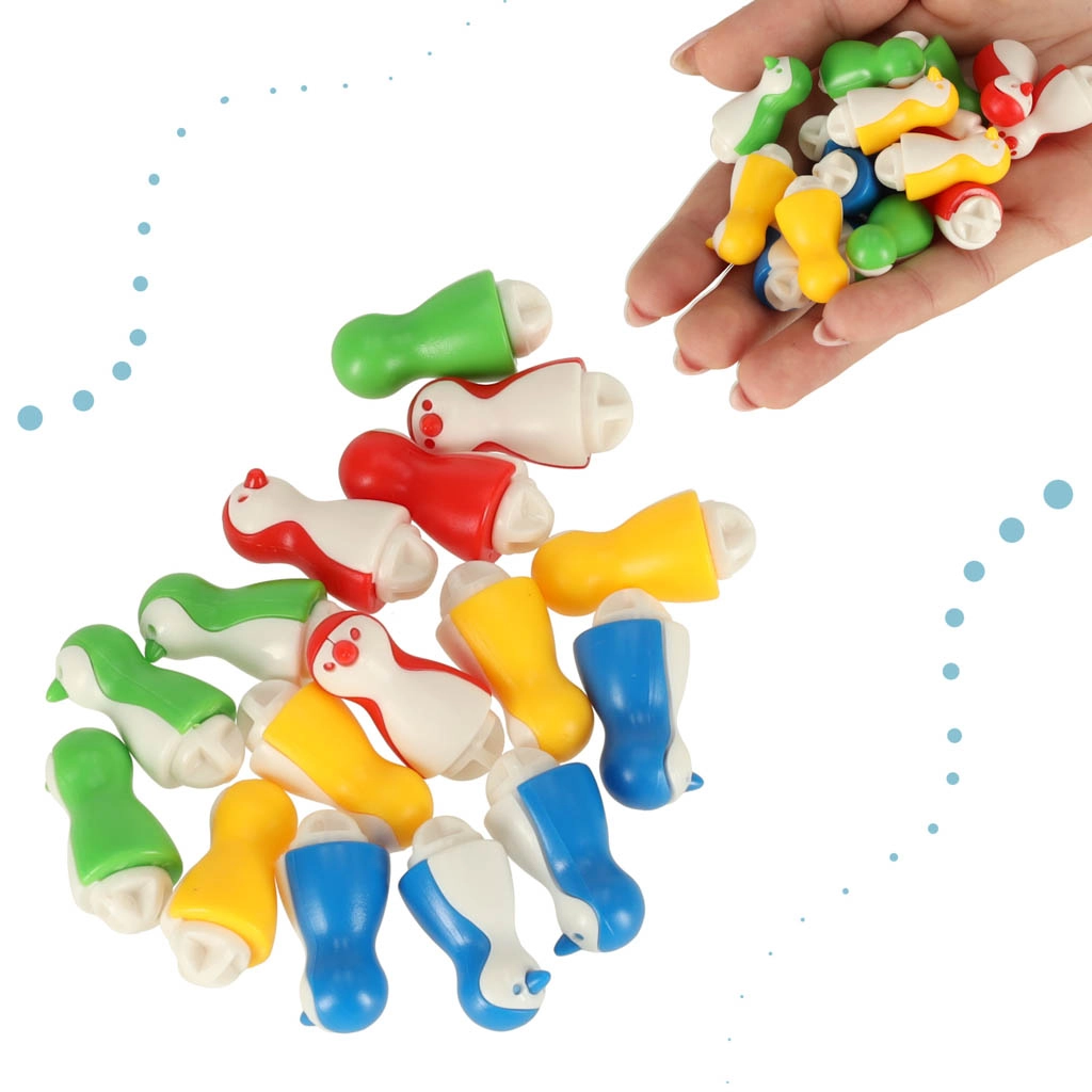 Komplektis on 16 pingviininuppu neljas värvis – sinine, kollane, roheline ja punane – selgeks ja lõbusaks mänguks.