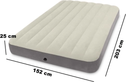 INTEXi täispuhutav madrats pakub kahale mugavat ja stabiilset und. Tänu veekindlale veluurpinnale on see meeldiv puudutusele ega libise, samal ajal kui vastupidav PVC tagab pika tööea nii kodus kui ka reisil.