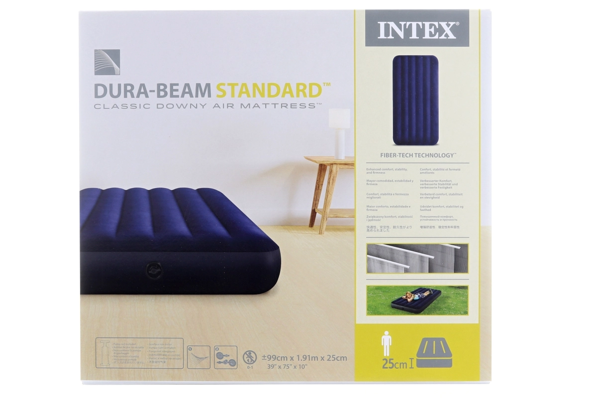 Praktiline üheinimese täispuhutav madrats mõõtudega 191 × 99 × 25 cm kaubamärgilt INTEX on ideaalne nii kodu kasutuseks kui ka reisidele. Vastupidav PVC koos sametise veluurkattega pinnal tagab meeldiva puudutuse ja parema linahaarduvuse, samas kui Dura‑Beam Fiber tehnoloogia pakub stabiilset tuge ja pikka tööiga. Komplektis on paranduspaik.