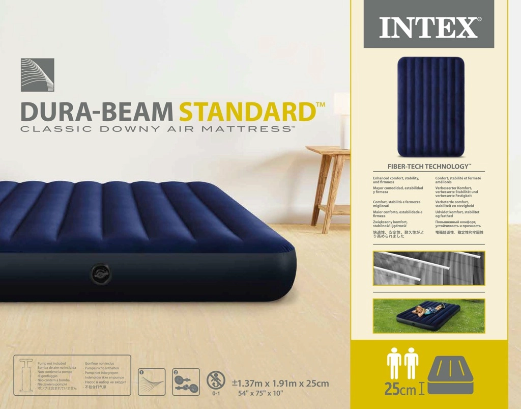 INTEX täispuhutav madrats Dura-Beam Fiber tehnoloogiaga tagab terve une, hoides puhkuse ajal selgroo anatoomilises asendis. Madrats on valmistatud vastupidavast PVC-st ning pealispind on kaetud veekindla sametise materjaliga. Tänu Boston-ventiilile saab madratsi kiiresti tühjendada ja hõlpsasti hoiustada.
