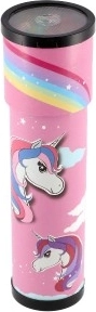 Lõbus roosa disain ükssarviku ja vikerkaarega toetab fantaasiat ning teeb kaleidoskoobist lemmikmänguasja väikestele unistajatele.