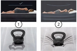 Integreeritud jalapump võimaldab lihtsat täitmist ilma elektrita. Madratsit saab lisaks pumbata ka tavalise pumbaga läbi ventiili.