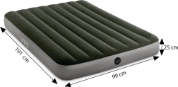 Mõõdud 191 × 99 × 25 cm pakuvad mugavat ruumi ühele täiskasvanule. Kvaliteetset PVC-d on lihtne hooldada ja veekindel flokitud pind suurendab nii mugavust kui ka vastupidavust. Komplektis on ka paranduspaik kiireteks remonttöödeks.