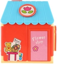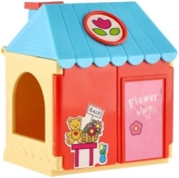Lõbus majake lillemotiivide ja kassaaparaadiga õpetab lapsi värve sobitama, seadeid looma ja klientide eest hoolitsema.