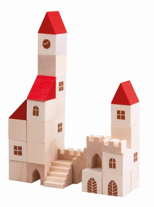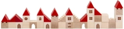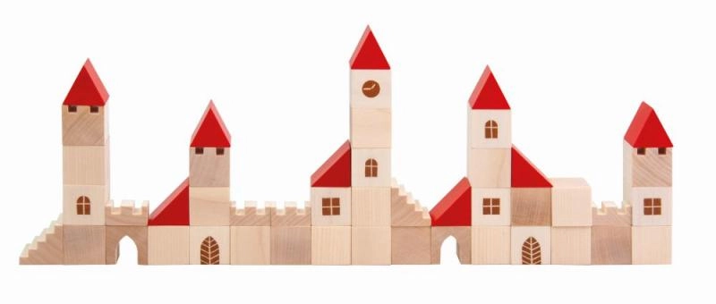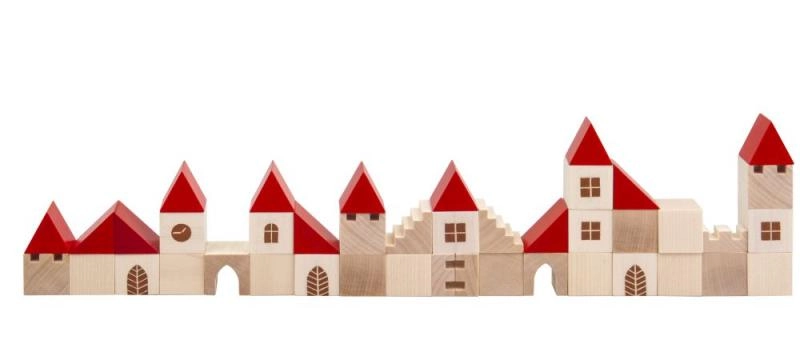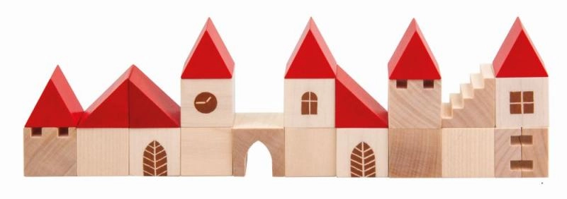 See puidust ehituskomplekt sisaldab 100 erineva kuju ja suurusega tükki, mis võimaldavad lastel luua oma väikese linnakese. Tänu värvilisele lahendusele punaste katuste ja naturaalse puiduga on komplekt mitte ainult kaunis, vaid ka täielikult funktsionaalne kujutlusvõime arendamiseks. See aitab arendada peenmotoorikat ja ruumitaju.