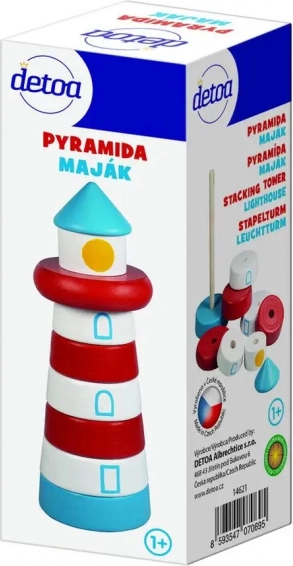 Puidust majakas kui kokkupandav püramiid kutsub lapsi asetama üksikuid tükke pulgale vastavalt kujule ja suurusele. Mäng toetab intuitiivselt silma-käe koordinatsiooni, kannatlikkust ning värvide ja kujundite tajumist ning samal ajal meeldivalt stimuleerib kompimistänu siledale pinnale.
