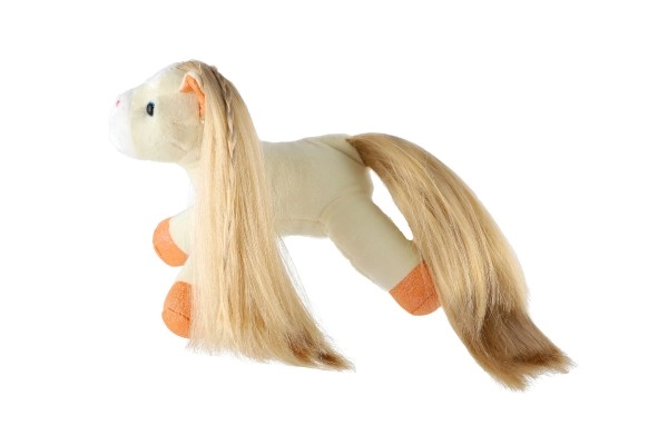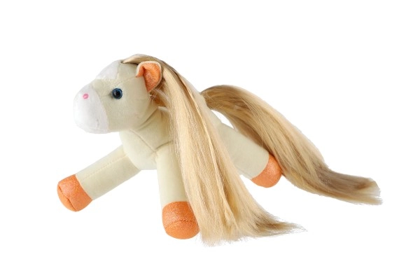 See oranž plüüsist käekott peidab endas armsat hobukest, mida saab igal ajal välja võtta ja tagasi panna. Pikk, pehme lakk lausa kutsub kammima ja patse punuma, arendades peenmotoorikat ja loovust.