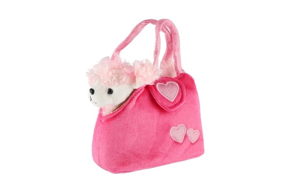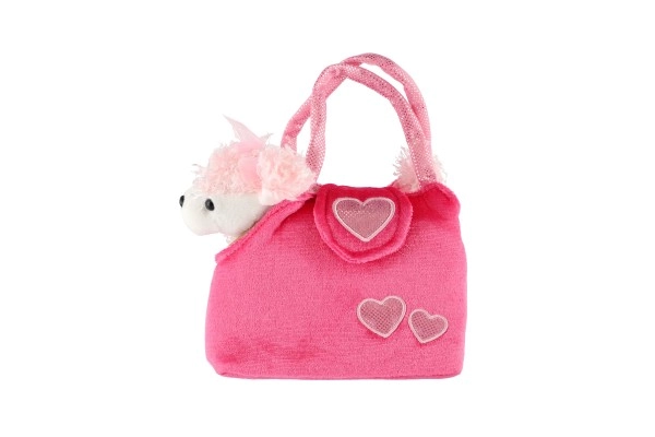 Armas komplekt väikestele moegurmaanidele: ülipehme plüüskoerake peidus roosas käekotis südamekestega. Ideaalne reisimiseks, rollimängudeks ja kallistamiseks – koera saab käekotist igal ajal välja võtta.