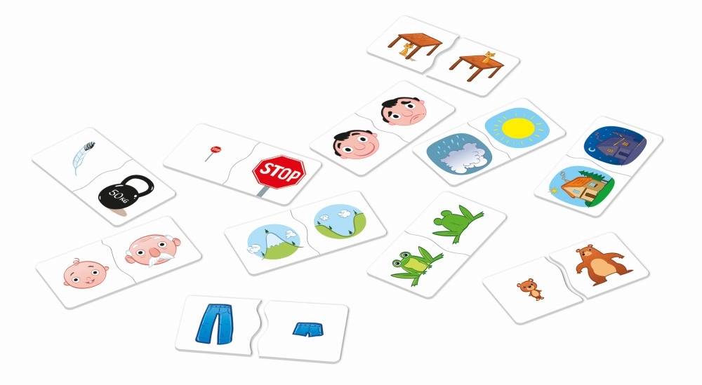 Lõbus hariv mäng kõige pisematele, mis õpetab lapsi mõistma vastandeid suurte kahest tükist koosnevate kaartide abil. Tänu ainulaadsele ühenduskujule saavad lapsed kohe teada, kas nad leidsid õige paari. Arendab sõnavara, loogilist mõtlemist, tähelepanu ja peenmotoorikat.