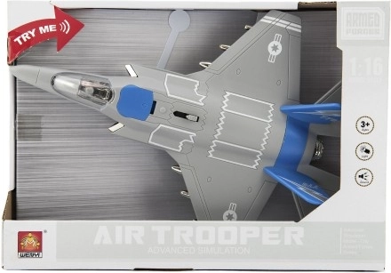 See plastikust hävitaja on ideaalne mänguasi väikestele sõduritele ja pilootidele. See on valmistatud kvaliteetsetest materjalidest ja sobib lastele alates 3. eluaastast. Tänu realistlikele valgus- ja heliefektidele pakub see palju lusti.