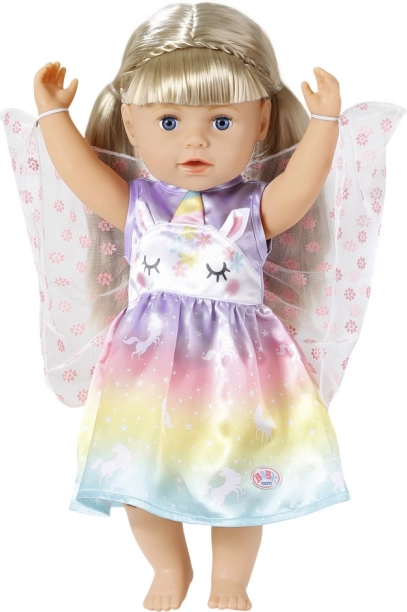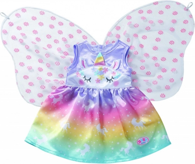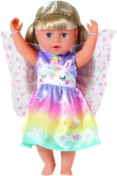Muuda iga mäng muinasjutuliseks seikluseks. Need kleidid BABY born nukule suuruses 43 cm (sobivad ka 39–46 cm) säravad vikerkaareülemineku, ükssarvikumotiivide ja õrnade tiibadega. Tänu kvaliteetsetele materjalidele peab vastu rohketele ümberriietamistele, teepidudele ja kuninglikele paraadidele.