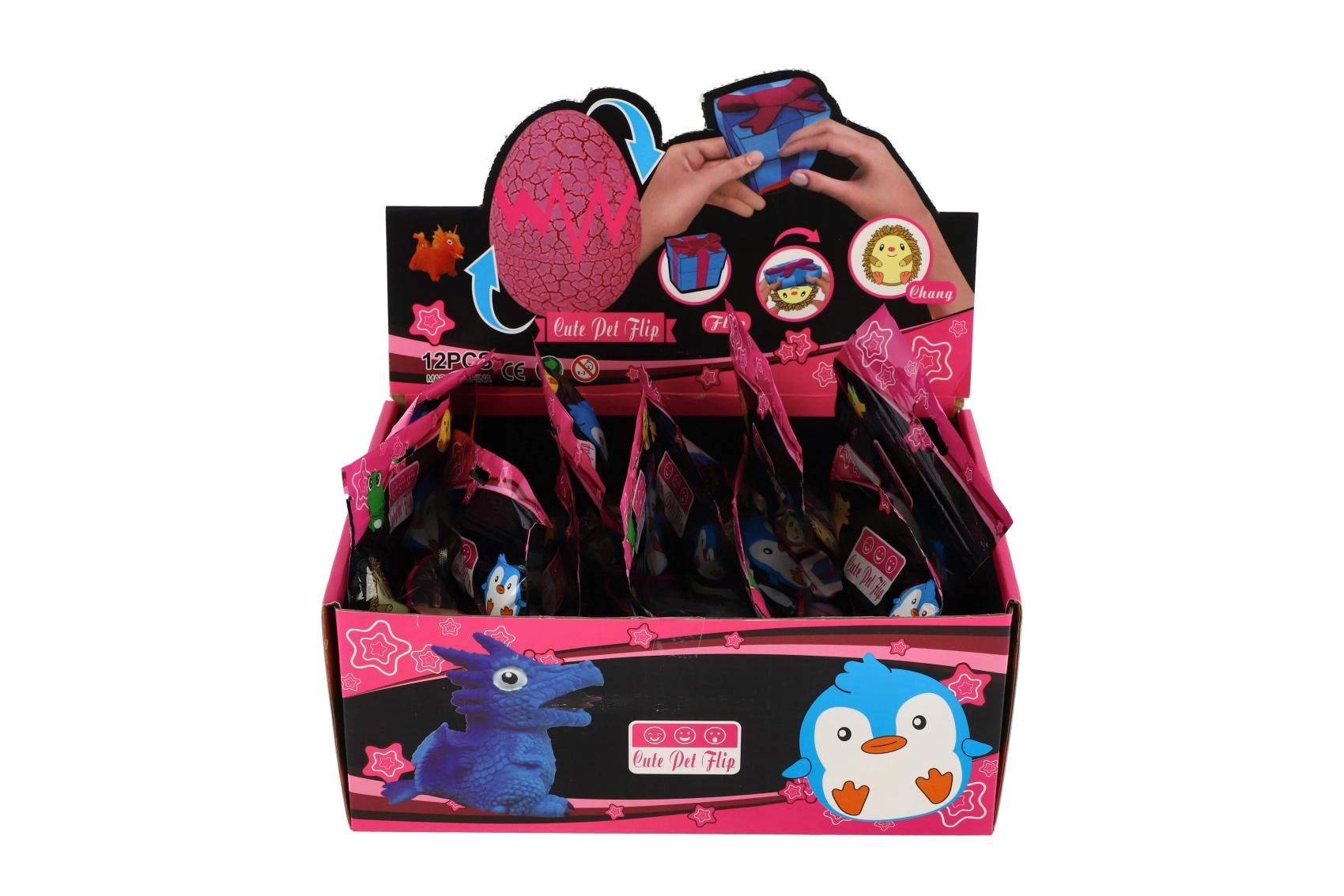 - Pööratav mänguasi 2-ühes (kingitus ↔ loomake), antistressne pigistamismänguasi