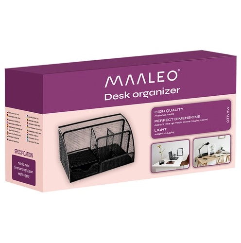 Hoia oma töölaud korras kompaktse ja vastupidava lauaorganiseerijaga, mis on valmistatud metallist võrgust elegantses mustas värvitoonis. Sellel on 6 sektsiooni, praktiline väljatõmmatav sahtel ja nutikas jaotus pliiatsitele, markeritele, märkmepaberitele, kirjaklambritele ja kääridele – ideaalne kontorisse, kodukontorisse ja õppimiseks.