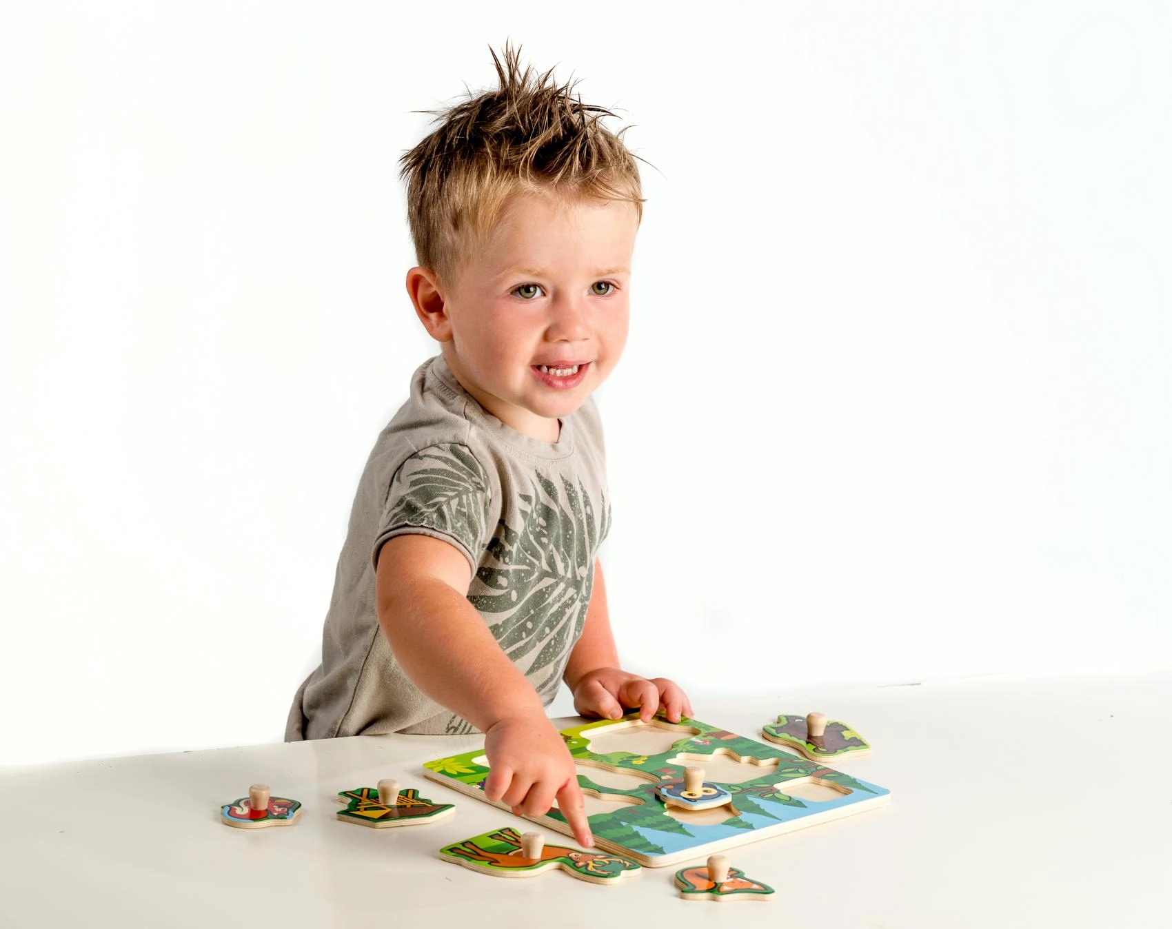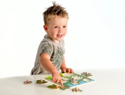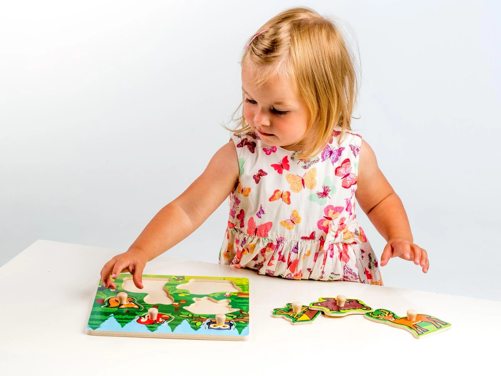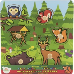 Metsateemad, nagu kassikakk, orav, metssiga ja hirv, innustavad avastama lõbusal viisil. Puidust alusraam hoiab iga tüki oma kohal ja lihtsustab õiget sobitamist nii kuju kui ka pildi järgi.