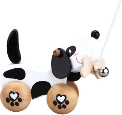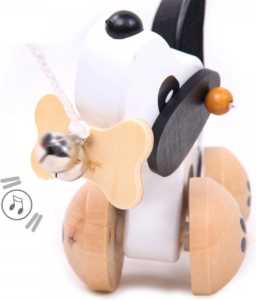 Kutsu on käpajälgede motiiviga ratastel ning tema saba liputab liikumisel, mis lisab mängulisust. Lõbu võimendab kelluke, mis ergutab laste kuulmismeelt. Varustatud nööriga, mis on kinnitatud suu sees oleva kondi külge, mis võimaldab hõlpsat tõmbamist. Sobib mängimiseks nii toas kui ka õues.