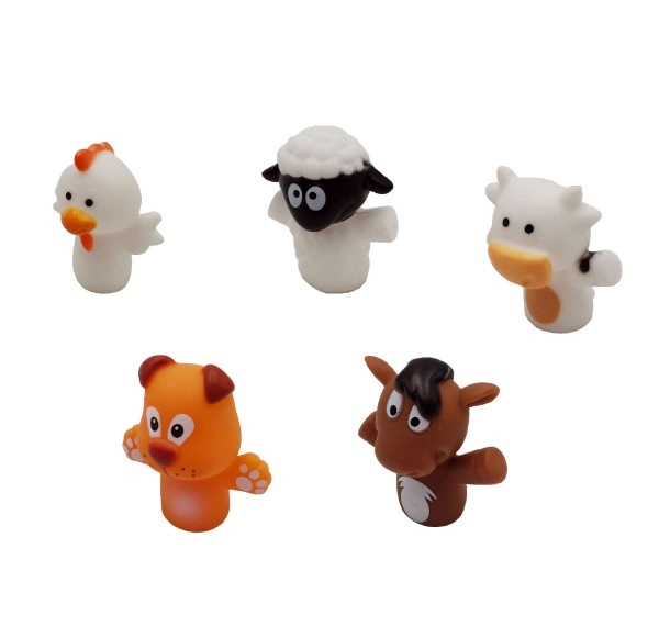 Komplektis on viis populaarset looma (nt lehm, hobune, koer, lammas, tibu) erksates värvides, mis köidavad tähelepanu ja innustavad aktiivselt mängima. Sõrmenukud on suurepärased kõnearengu, loovuse ja sotsiaalsete oskuste arendamiseks alates 3. eluaastast.