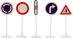 Pakendis on mitmekesine valik märke – alates Stop-märgist ja peatee ning kõrvaltee märgistusest kuni keeldude ja käskudeni, samuti hoiatuskolmnurgad ja infotahvlid. Vastupidav plast sobib igapäevaseks mänguks ja on lihtne korrastada.