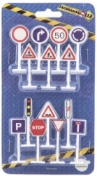 Lõbus ja samas hariduslik liiklusmärkide komplekt õpetab lastele liikluseeskirjade aluseid mängu kaudu. Komplekt sisaldab 14 plastist märki kõrgusega u 5–5,5 cm alusel, ideaalne täienduseks autoradadele, mänguvaipadele ja ka lasteaeda. Arendab loogilist mõtlemist, tähelepanu ja turvalist käitumist teel. Sobib lastele alates 3. eluaastast.
