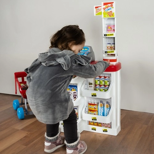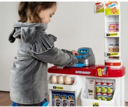 Laste supermarket sobib suurepäraselt nii väikestele müüjatele kui ka klientidele. Komplektis on toimiv kassa väljatõmmatava sahtliga, triipkoodiskänner heliga, poekaal, tooteriiulid ja ostukäru. Tänu rikkalikule varustusele harjutavad lapsed arvutamist, suhtlemist ja iseseisvust.