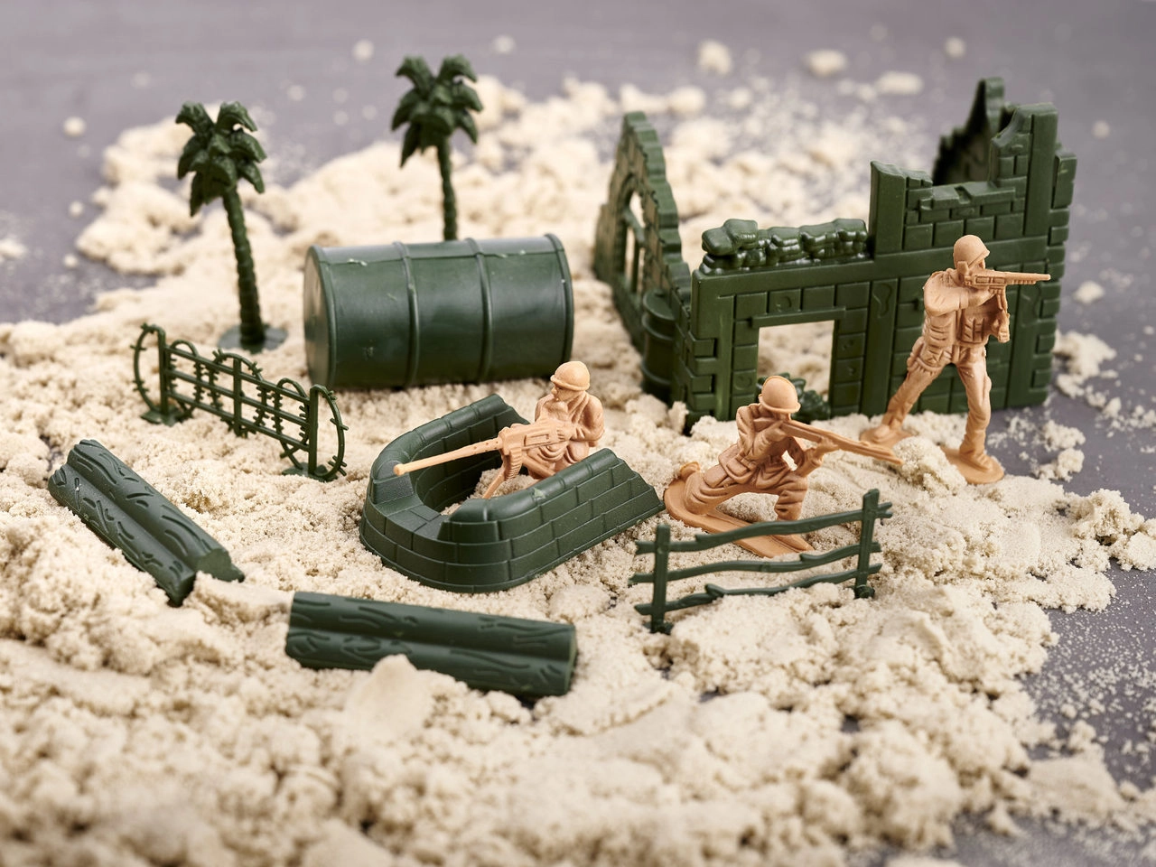 Loo detailne lahingustseen plastist sõduritega kahes värvitoonis ja rohke lisavarustusega. Lapsed saavad kavandada strateegiaid, ehitada kaitseliine ning arendada loogilist mõtlemist ja ruumitaju. Komplekt sobib suurepäraselt nii üksik- kui ka meeskonnamänguks õdede-vendade või sõpradega.