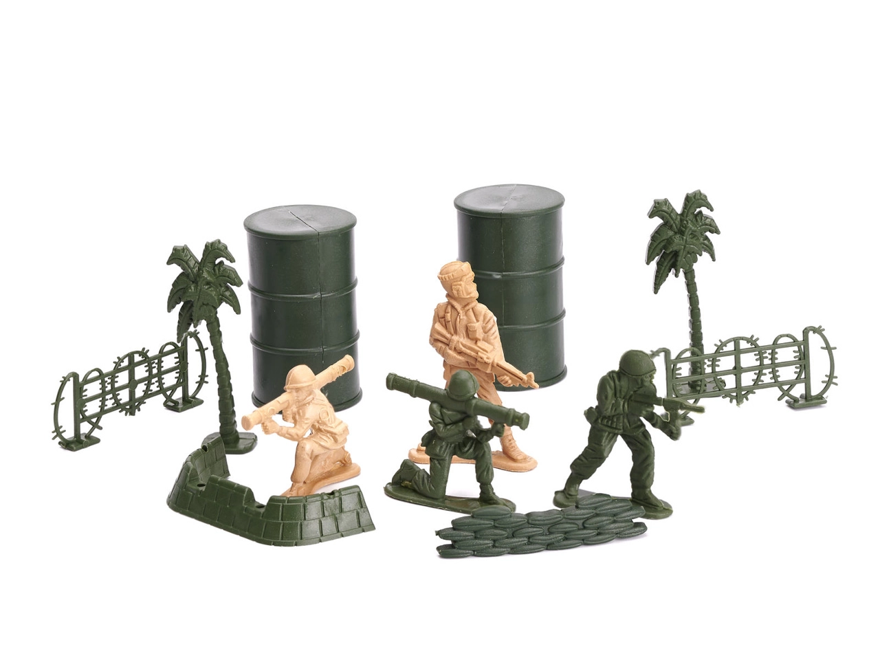 Komplekti kuulub ligikaudu 60 sõdurifiguuri erinevates poosides ning rikkalikud komponendid sõjaväebaasi ehitamiseks – tünnid, aiad, tõkked, palmid ja muu. Figuuride kõrgus on umbes 5 cm, need seisavad kindlalt tasasel pinnal ja on lihtsasti paigutatavad.