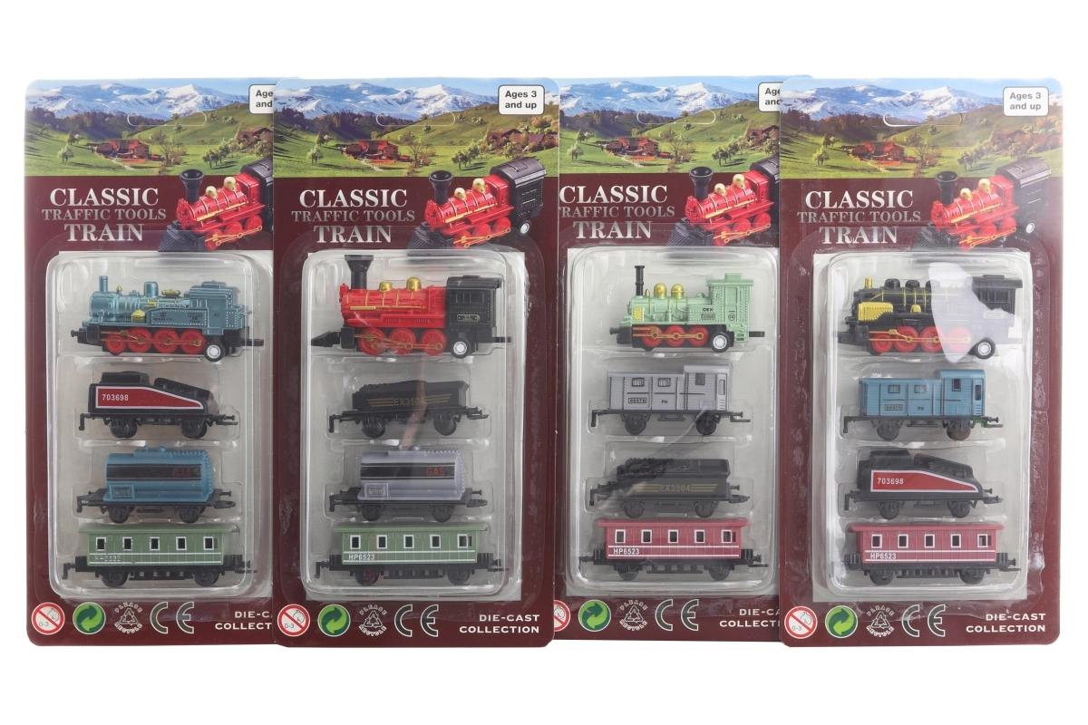 Avasta rööbastel lõbu stiilse metallist rongikomplektiga lastele alates 3. eluaastast. Komplektis on vedur ja 3 vagunit, mis rõõmustavad detailse teostuse ja vastupidava metallkvaliteediga – ideaalne väikestele rongisõpradele.