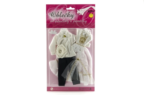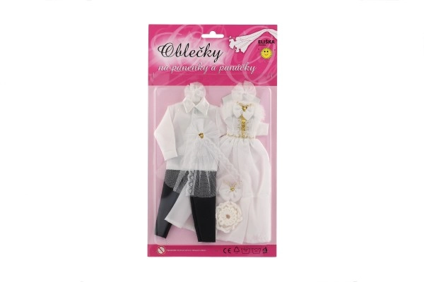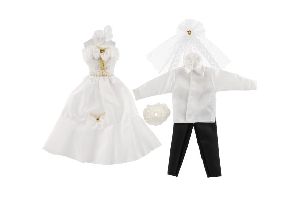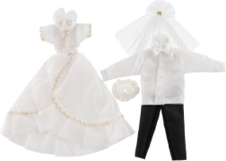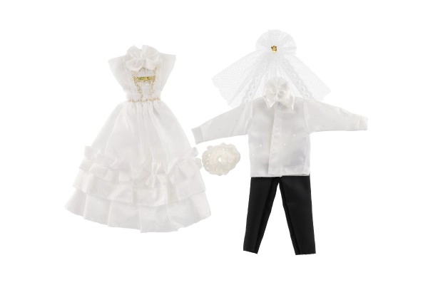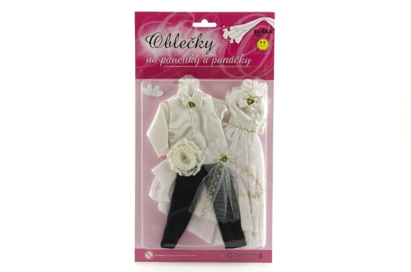 Selle ainulaadse pulmarõivaste komplektiga võivad sinu nukud saada iga kujuteldava pulma tõelisteks tähtedeks! Rõivaste hulka kuuluvad detailirohke kleit ja elegantne ülikond, mis lisavad sinu pulmaloolle võlu ja sära.