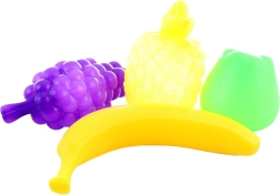 See värviküllane viljakomplekt sisaldab armastatuid puuvilju nagu banaan, õun, apelsin, viinamarjad ja ananass. Iga tükk on valmistatud kergest ja vastupidavast plastist, millel on ümardatud servad ohutuks mänguks. Praktiline võrgust pakk teeb kandmise ja hoiustamise lihtsaks.