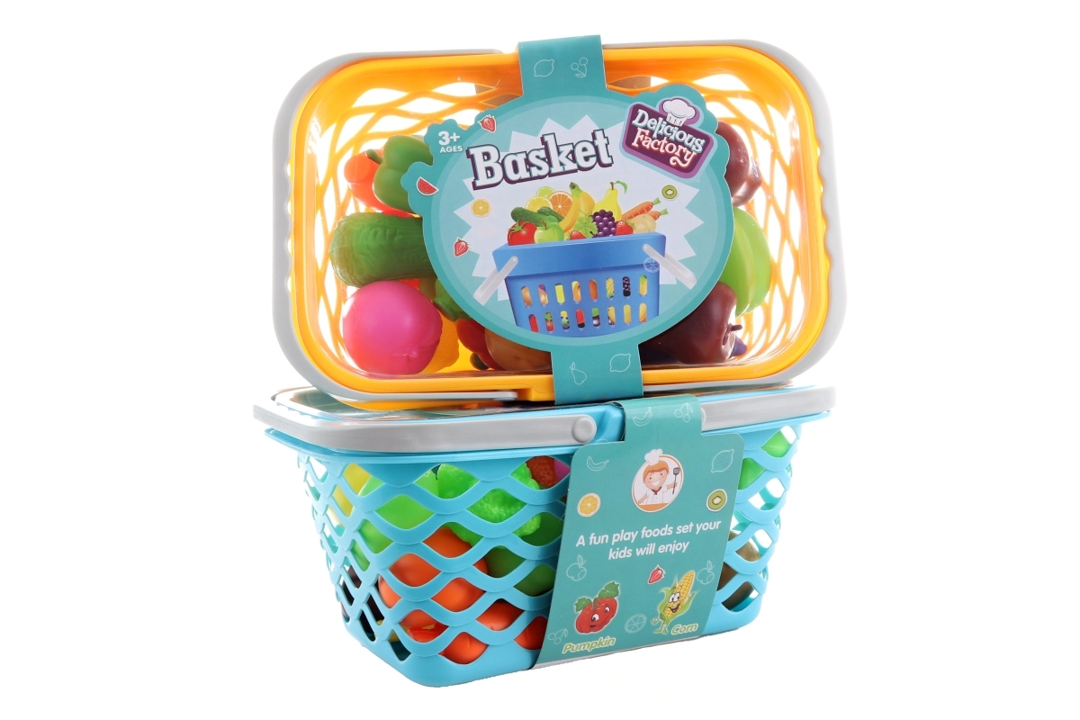 See värviküllane plastist puuviljade ja köögiviljade komplekt korvis pakub rõõmu igale väikesele kokanduse ja ostlemise huvilisele. Ventilatsiooniavade ja kaanega korv toimib praktilise hoiulahenduse ja kandekotina, nii et lapsed saavad oma varustuse võtta kaasa igale mängule.