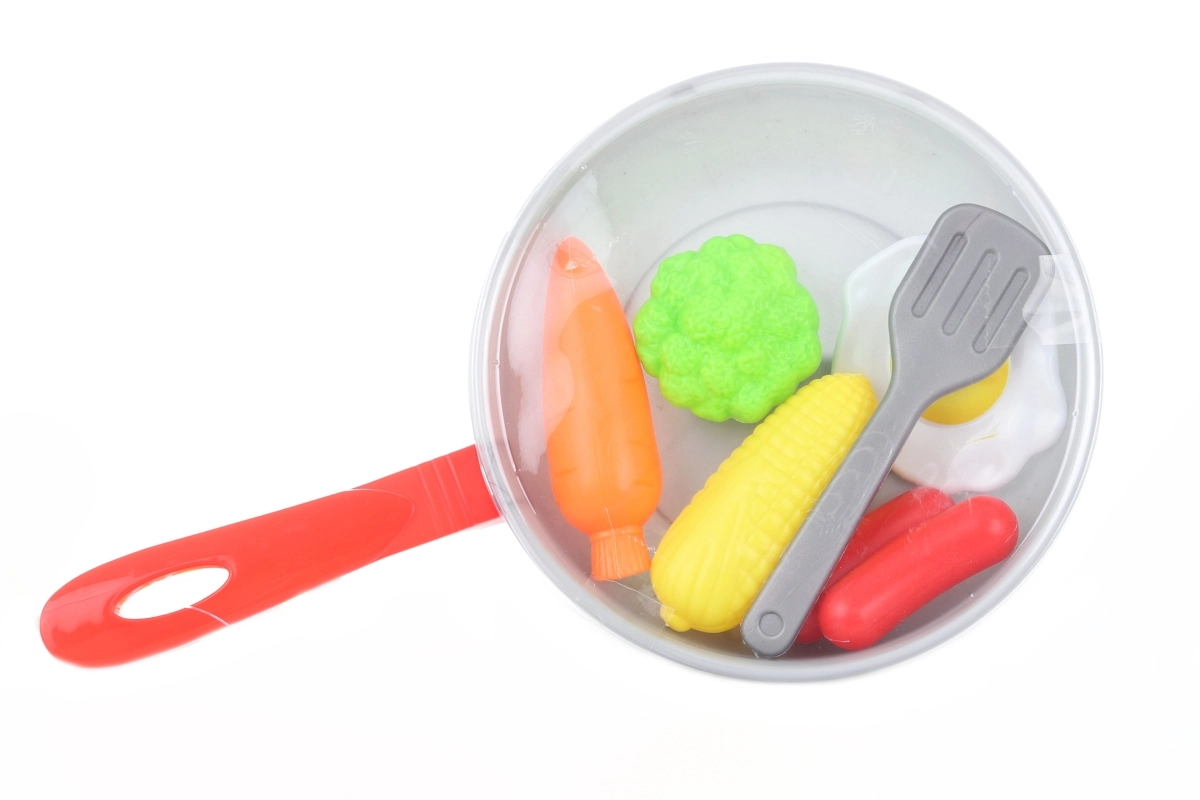 Lõbus laste kokkamiskomplekt plastist panniga, pöördlabida ja 5 toiduosaga pakub realistlikku kokamismängu. Ideaalne kujutlusvõime arendamiseks ja peenmotoorika treenimiseks, ohutu lastele alates 3. eluaastast.