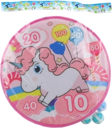Lõbus laste takjanooltahvel ükssarviku motiiviga, läbimõõt u 35 cm, kuue takjapalliga turvaliseks viskamiseks. Ideaalne laste motoorika, täpsuse ja silma-käe koordineerimise arendamiseks alates 3. eluaastast.