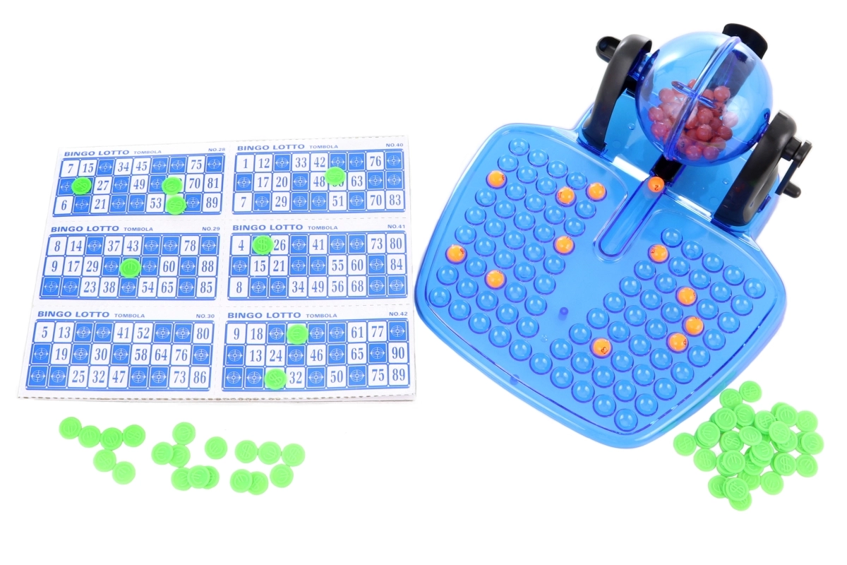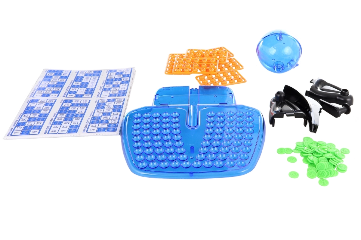 Sisaldab mängulauda, loosimiskuuli, 90 numbriga märgistatud palli ja 48 mängukaarti.