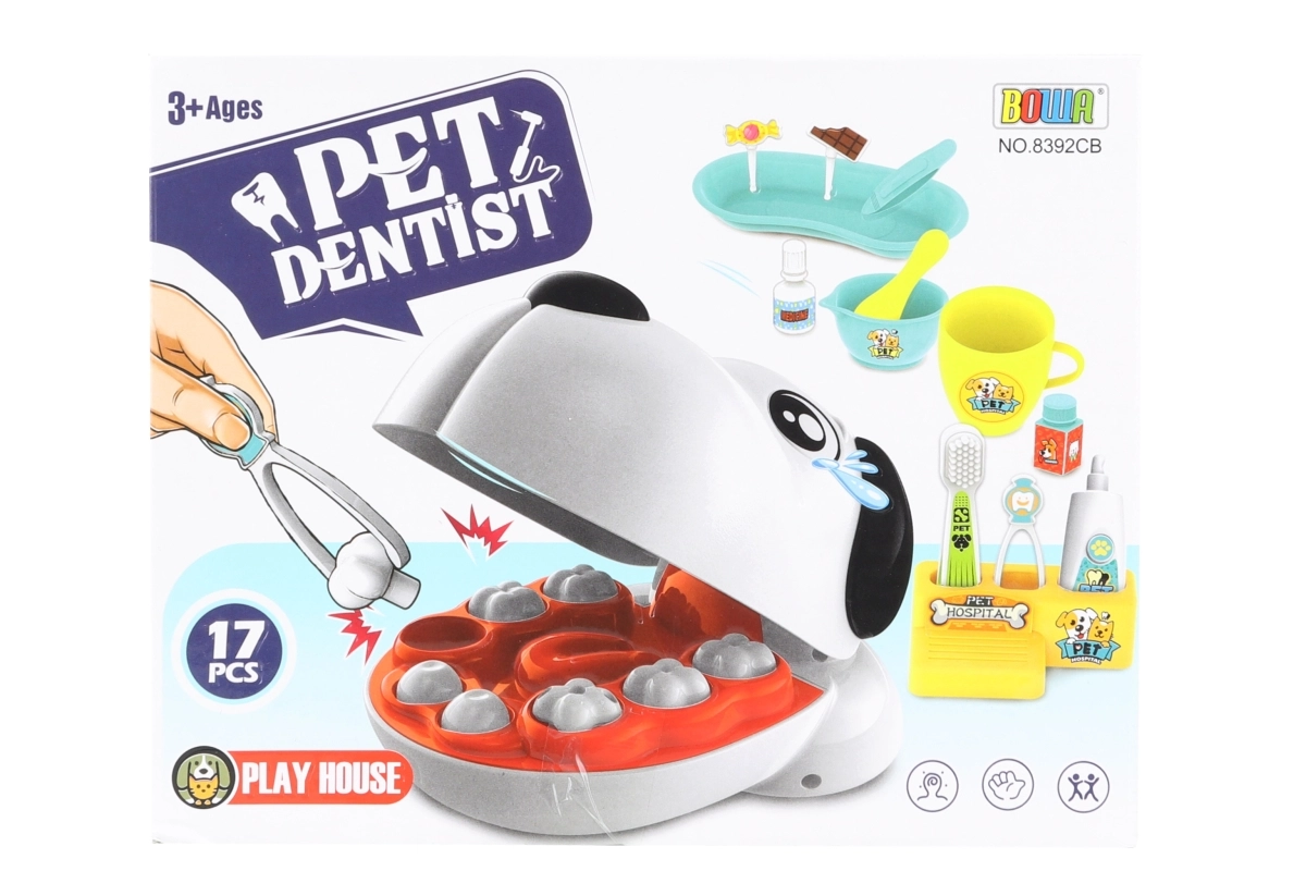 Armas koerapea avatud suuga võimaldab turvalist ja selget „ravi” – kontrolli, puurimist ja „plommeerimist”. Valgustusega peegel (patareitoitel) muudab mängu nauditavamaks ja realistlikumaks. Plastist „šokolaad” ja „kommid” on suurepärased abivahendid selgitamaks, miks on oluline hambaid pesta ja käia ennetavatel kontrollidel.